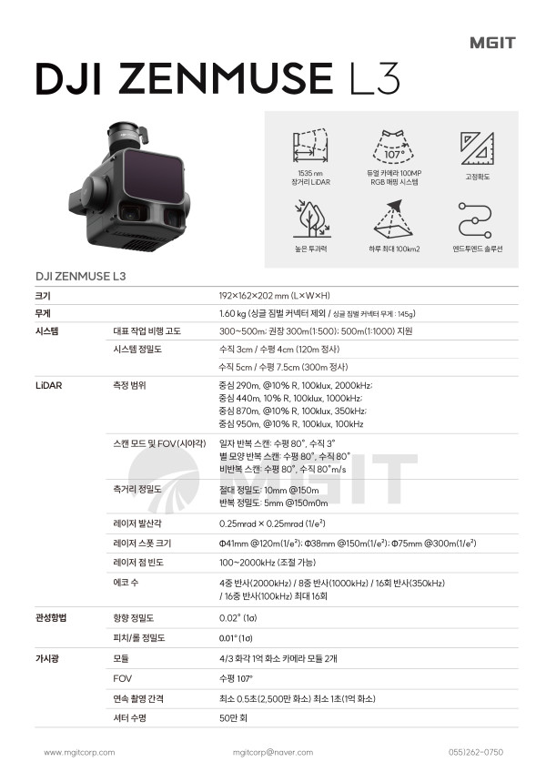 DJI ENTERPRISE [DJI] ZENMUSE L3 페이지 정보 작성자 MGIT 조회432회 작성일 25-11-07 17:41 본문 첨부파일 [MGIT 드론백과] ZENMUSE L3.pdf (6.3M) 8회 다운로드 | DATE : 2025-11-07 17:43:25 관련링크 https://www.mgitmall.com/creator/?idx=550 264회 연결 목록 글쓰기